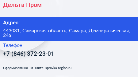 Дельта-Пром по адресу 443031, Самарская область, Самара, Демократическая, 24а в дальнейшем Организация, размещена в следующих категориях: