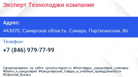 Эксперт Технолоджи, компания по адресу 443070, Самарская область, Самара, Партизанская, 86 в дальнейшем Организация, размещена в следующих категориях: