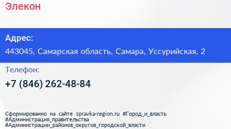 Элекон по адресу 443045, Самарская область, Самара, Уссурийская, 2 в дальнейшем Организация, размещена в следующих категориях:
