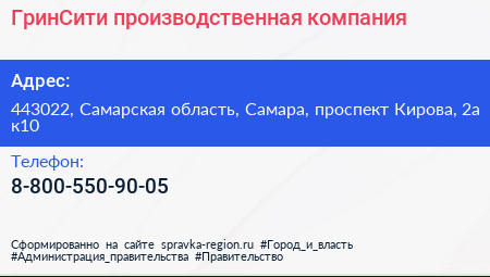 ГринСити, производственная компания по адресу 443022, Самарская область, Самара, проспект Кирова, 2а к10 в дальнейшем Организация, размещена в следующих категориях: