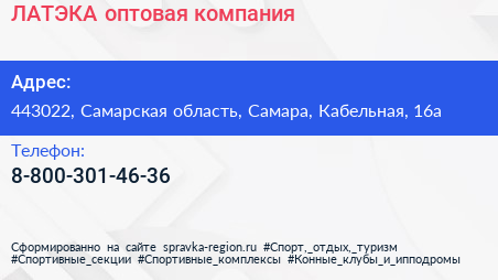 ЛАТЭКА, оптовая компания по адресу 443022, Самарская область, Самара, Кабельная, 16а в дальнейшем Организация, размещена в следующих категориях: