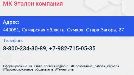 МК-Эталон, компания по адресу 443081, Самарская область, Самара, Стара-Загора, 27 в дальнейшем Организация, размещена в следующих категориях: