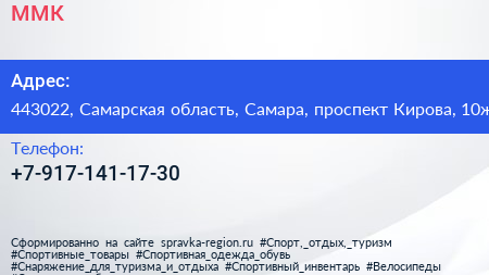 ММК по адресу 443022, Самарская область, Самара, проспект Кирова, 10ж в дальнейшем Организация, размещена в следующих категориях:
