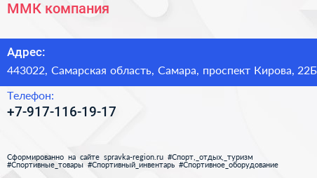 ММК, компания по адресу 443022, Самарская область, Самара, проспект Кирова, 22Б в дальнейшем Организация, размещена в следующих категориях: