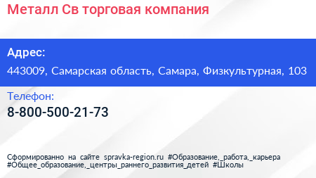 Металл Св, торговая компания по адресу 443009, Самарская область, Самара, Физкультурная, 103 в дальнейшем Организация, размещена в следующих категориях: