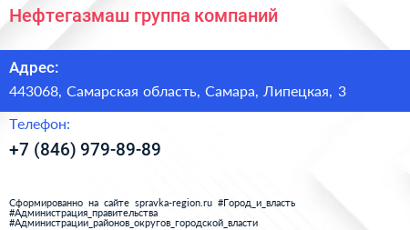 Нефтегазмаш, группа компаний по адресу 443068, Самарская область, Самара, Липецкая, 3 в дальнейшем Организация, размещена в следующих категориях: