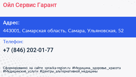 Ойл Сервис Гарант по адресу 443001, Самарская область, Самара, Ульяновская, 52 в дальнейшем Организация, размещена в следующих категориях: