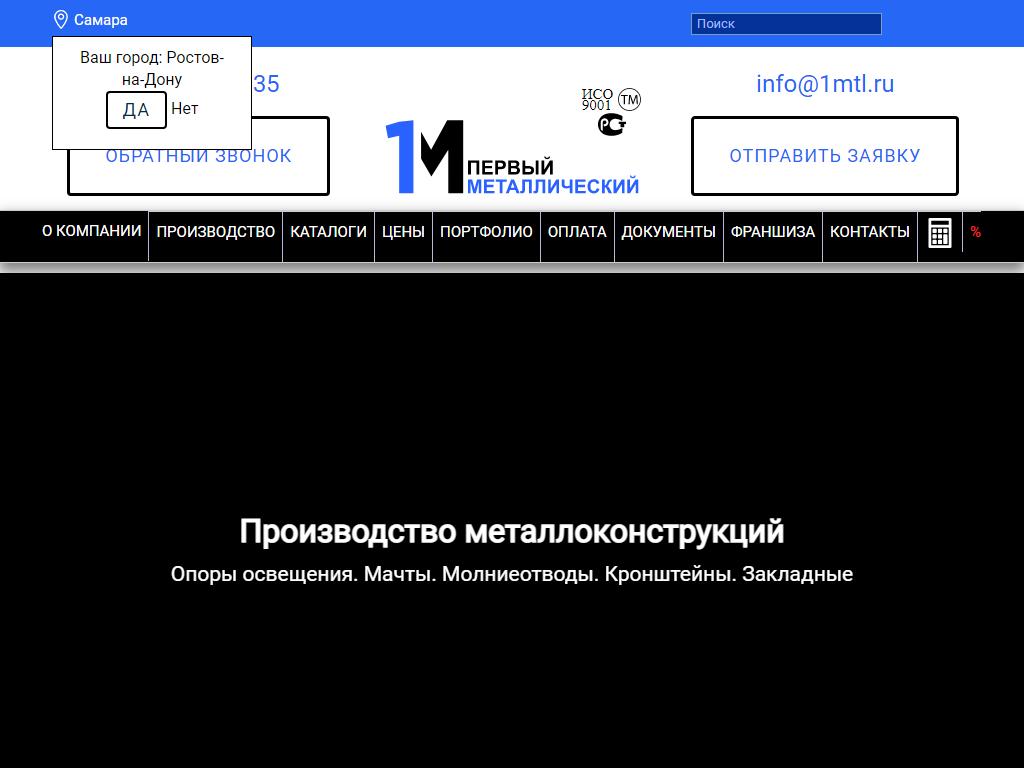 ПЕРВЫЙ МЕТАЛЛИЧЕСКИЙ по адресу 443022, Самарская область, Самара, Калинина, 1 к3 в дальнейшем Организация, размещена в следующих категориях: