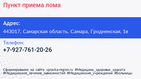 Пункт приема лома по адресу 443017, Самарская область, Самара, Гродненская, 1в в дальнейшем Организация, размещена в следующих категориях: