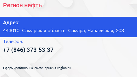 Регион-нефть по адресу 443010, Самарская область, Самара, Чапаевская, 203 в дальнейшем Организация, размещена в следующих категориях: