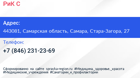 РиК-С по адресу 443081, Самарская область, Самара, Стара-Загора, 27 в дальнейшем Организация, размещена в следующих категориях: