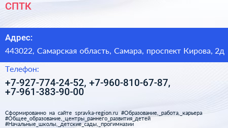 СПТК по адресу 443022, Самарская область, Самара, проспект Кирова, 2д в дальнейшем Организация, размещена в следующих категориях: