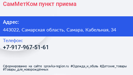 СамМетКом, пункт приема по адресу 443022, Самарская область, Самара, Кабельная, 34 в дальнейшем Организация, размещена в следующих категориях: