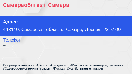 Самараоблгаз, г. Самара по адресу 443110, Самарская область, Самара, Лесная, 23 к100 в дальнейшем Организация, размещена в следующих категориях: