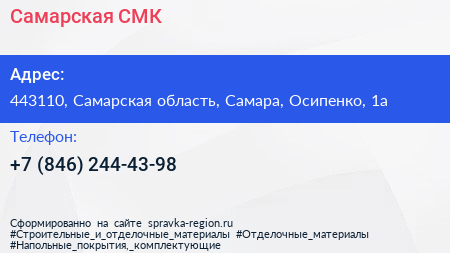 Самарская СМК по адресу 443110, Самарская область, Самара, Осипенко, 1а в дальнейшем Организация, размещена в следующих категориях: