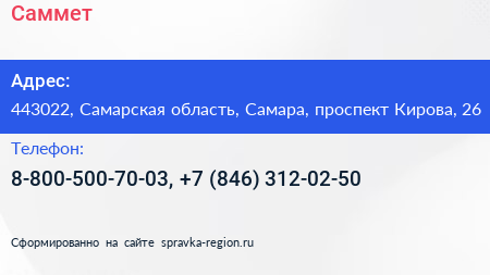 Саммет по адресу 443022, Самарская область, Самара, проспект Кирова, 26 в дальнейшем Организация, размещена в следующих категориях: