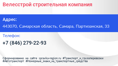 Велесстрой, строительная компания по адресу 443070, Самарская область, Самара, Партизанская, 33 в дальнейшем Организация, размещена в следующих категориях: