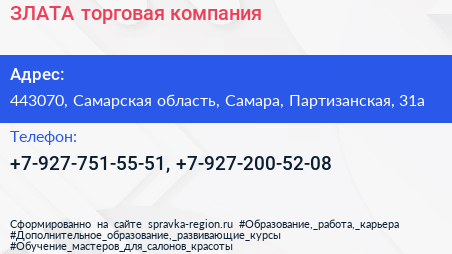 ЗЛАТА, торговая компания по адресу 443070, Самарская область, Самара, Партизанская, 31а в дальнейшем Организация, размещена в следующих категориях: