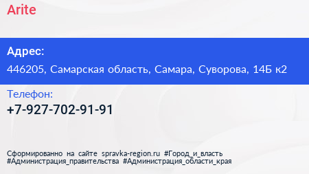 Arite по адресу 446205, Самарская область, Самара, Суворова, 14Б к2 в дальнейшем Организация, размещена в следующих категориях: