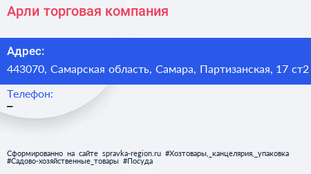 Арли, торговая компания по адресу 443070, Самарская область, Самара, Партизанская, 17 ст2 в дальнейшем Организация, размещена в следующих категориях: