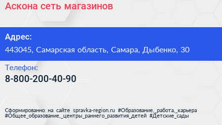 Аскона, сеть магазинов по адресу 443045, Самарская область, Самара, Дыбенко, 30 в дальнейшем Организация, размещена в следующих категориях: