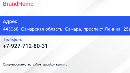 BrandHome по адресу 443068, Самарская область, Самара, проспект Ленина, 25а в дальнейшем Организация, размещена в следующих категориях: