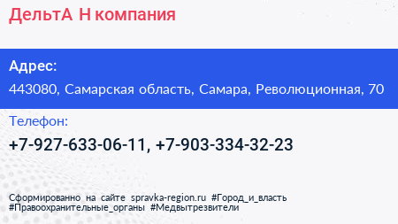 ДельтА-Н, компания по адресу 443080, Самарская область, Самара, Революционная, 70 в дальнейшем Организация, размещена в следующих категориях: