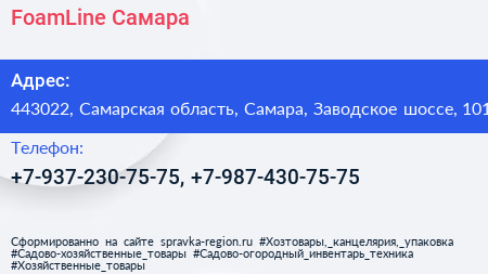FoamLine Самара по адресу 443022, Самарская область, Самара, Заводское шоссе, 101 в дальнейшем Организация, размещена в следующих категориях: