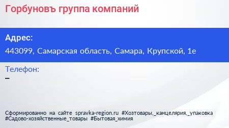 Горбуновъ, группа компаний по адресу 443099, Самарская область, Самара, Крупской, 1е в дальнейшем Организация, размещена в следующих категориях: