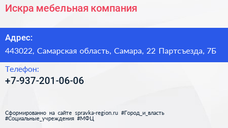 Искра, мебельная компания по адресу 443022, Самарская область, Самара, 22 Партсъезда, 7Б в дальнейшем Организация, размещена в следующих категориях:
