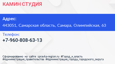 КАМИН СТУДИЯ по адресу 443051, Самарская область, Самара, Олимпийская, 63 в дальнейшем Организация, размещена в следующих категориях: