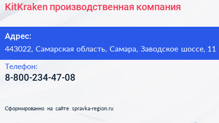 KitKraken, производственная компания по адресу 443022, Самарская область, Самара, Заводское шоссе, 11 в дальнейшем Организация, размещена в следующих категориях: