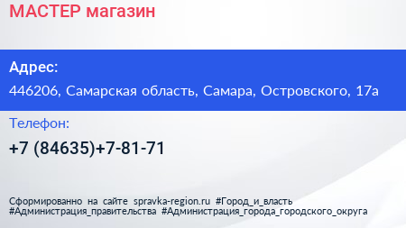 МАСТЕР, магазин по адресу 446206, Самарская область, Самара, Островского, 17а в дальнейшем Организация, размещена в следующих категориях: