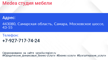 Medea, студия мебели по адресу 443080, Самарская область, Самара, Московское шоссе, 43-55 в дальнейшем Организация, размещена в следующих категориях: