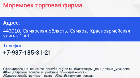 Моремоек, торговая фирма по адресу 443010, Самарская область, Самара, Красноармейская улица, 1 к3 в дальнейшем Организация, размещена в следующих категориях: