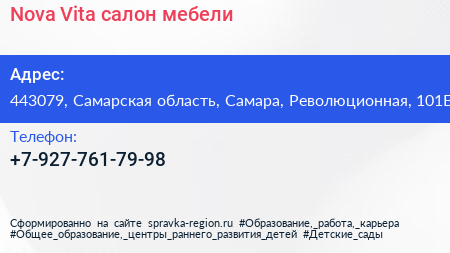 Nova Vita, салон мебели по адресу 443079, Самарская область, Самара, Революционная, 101Б в дальнейшем Организация, размещена в следующих категориях: