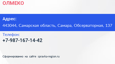 ОЛМЕКО по адресу 443044, Самарская область, Самара, Обсерваторная, 137 в дальнейшем Организация, размещена в следующих категориях:
