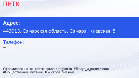 ПНТК по адресу 443013, Самарская область, Самара, Киевская, 5 в дальнейшем Организация, размещена в следующих категориях: