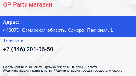 QP Partu, магазин по адресу 443070, Самарская область, Самара, Песчаная, 1 в дальнейшем Организация, размещена в следующих категориях: