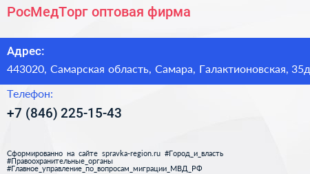 РосМедТорг, оптовая фирма по адресу 443020, Самарская область, Самара, Галактионовская, 35д в дальнейшем Организация, размещена в следующих категориях: