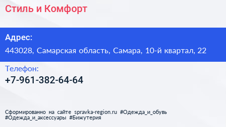 Стиль и Комфорт по адресу 443028, Самарская область, Самара, 10-й квартал, 22 в дальнейшем Организация, размещена в следующих категориях:
