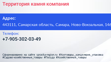 Территория камня, компания по адресу 443111, Самарская область, Самара, Ново-Вокзальная, 146 в дальнейшем Организация, размещена в следующих категориях: