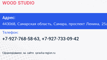 WOOD STUDIO по адресу 443068, Самарская область, Самара, проспект Ленина, 25а в дальнейшем Организация, размещена в следующих категориях: