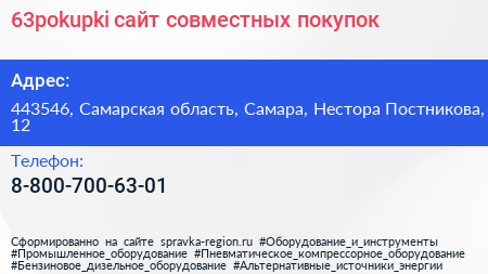 63pokupki, сайт совместных покупок по адресу 443546, Самарская область, Самара, Нестора Постникова, 12 в дальнейшем Организация, размещена в следующих категориях: