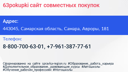 63pokupki, сайт совместных покупок по адресу 443045, Самарская область, Самара, Авроры, 181 в дальнейшем Организация, размещена в следующих категориях: