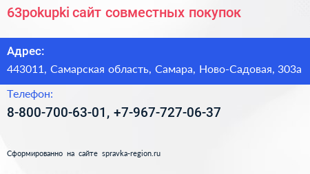 63pokupki, сайт совместных покупок по адресу 443011, Самарская область, Самара, Ново-Садовая, 303а в дальнейшем Организация, размещена в следующих категориях: