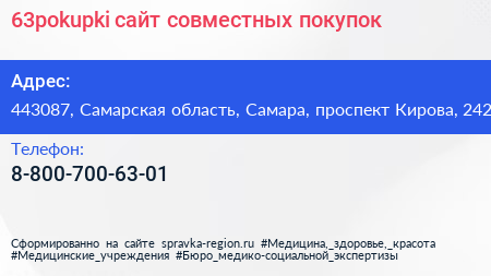 63pokupki, сайт совместных покупок по адресу 443087, Самарская область, Самара, проспект Кирова, 242 в дальнейшем Организация, размещена в следующих категориях: