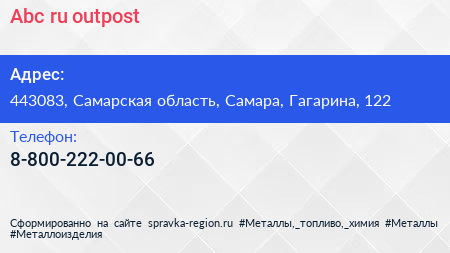 Abc.ru outpost по адресу 443083, Самарская область, Самара, Гагарина, 122 в дальнейшем Организация, размещена в следующих категориях:
