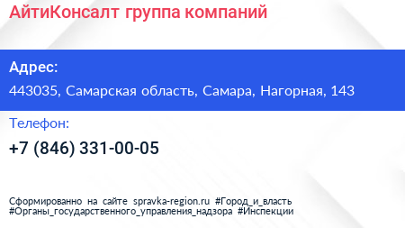 АйтиКонсалт, группа компаний по адресу 443035, Самарская область, Самара, Нагорная, 143 в дальнейшем Организация, размещена в следующих категориях: