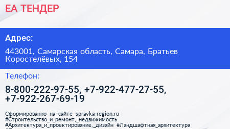 ЕА ТЕНДЕР по адресу 443001, Самарская область, Самара, Братьев Коростелёвых, 154 в дальнейшем Организация, размещена в следующих категориях: